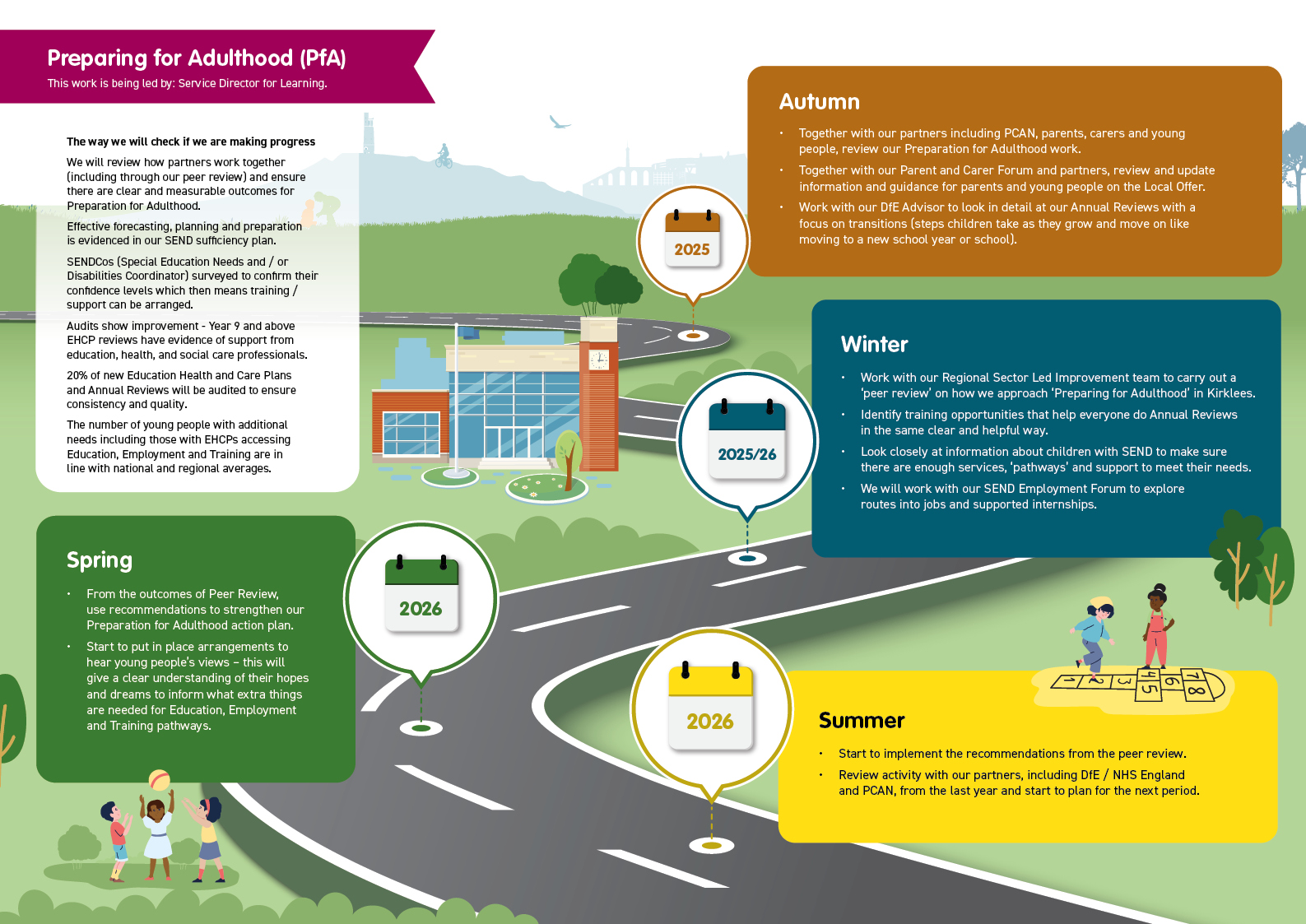You can see some examples in the roadmaps below, including the new youth forum that will meet in autumn 2025 as well as spring and summer in 2026. We will make sure that we are open about progress and challenges and share updates on the local offer so people can see what’s happening.